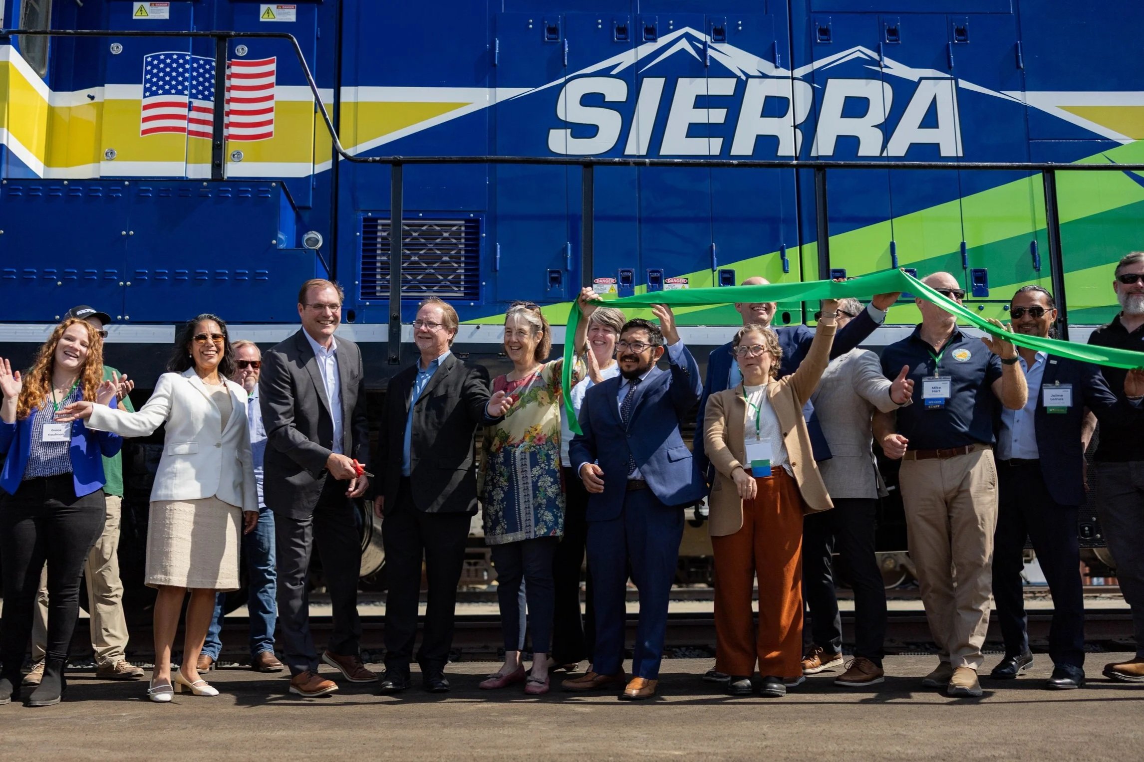 Public sector ribbon cutting and product launch highlighting innovation in sustainable transportation and bringing together government officials, industry leaders, and media.